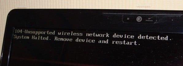 Error Message: 104-Unsupported wireless network device detected. System Halted. Remove device and restart.