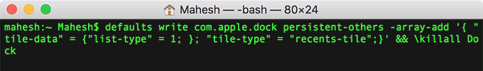 <img loading=“lazy” src=“https://www.switchingtomac.com/wp-content/uploads/2019/09/add-stack.png" onerror=“this.onerror=null;this.src=‘https://blogger.googleusercontent.com/img/a/AVvXsEhe7F7TRXHtjiKvHb5vS7DmnxvpHiDyoYyYvm1nHB3Qp2_w3BnM6A2eq4v7FYxCC9bfZt3a9vIMtAYEKUiaDQbHMg-ViyGmRIj39MLp0bGFfgfYw1Dc9q_H-T0wiTm3l0Uq42dETrN9eC8aGJ9_IORZsxST1AcLR7np1koOfcc7tnHa4S8Mwz_xD9d0=s16000';" alt=“Terminal window with command: defaults write com.apple.dock persistent-others -array-add ‘{ “tile-data” = {“list-type” = 1; }; “tile-type” = “recents-tile”;}’ && killall Dock - 2”>