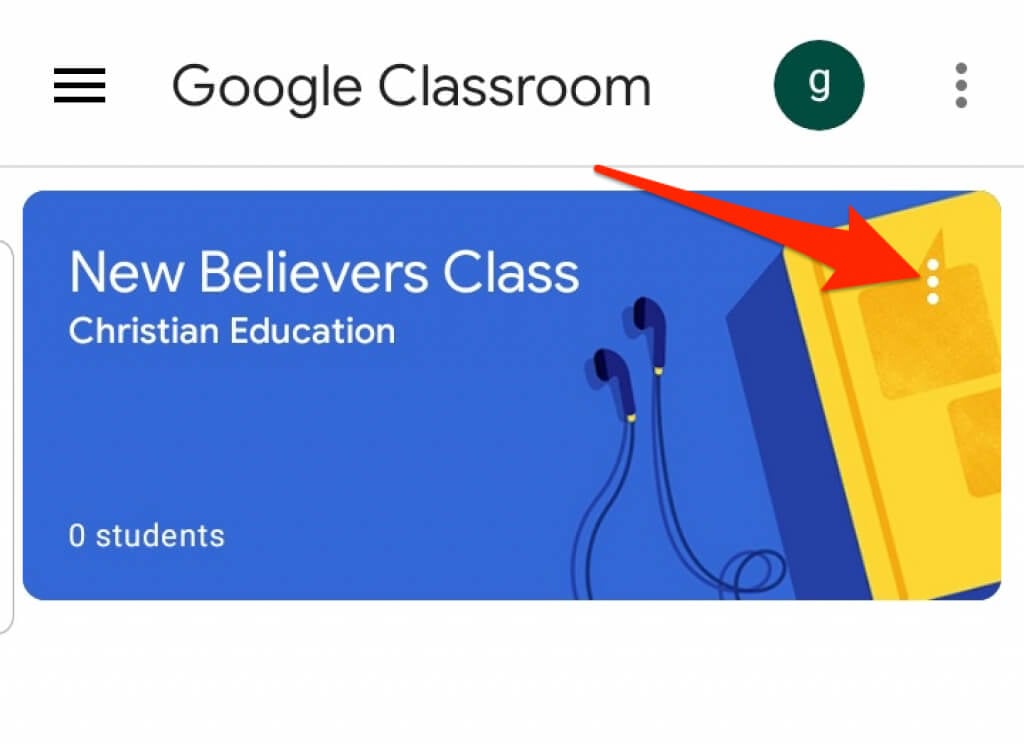 - Open the Google Classroom app and select More (ellipsis) in the top right corner of the class card for the course you’re deleting.