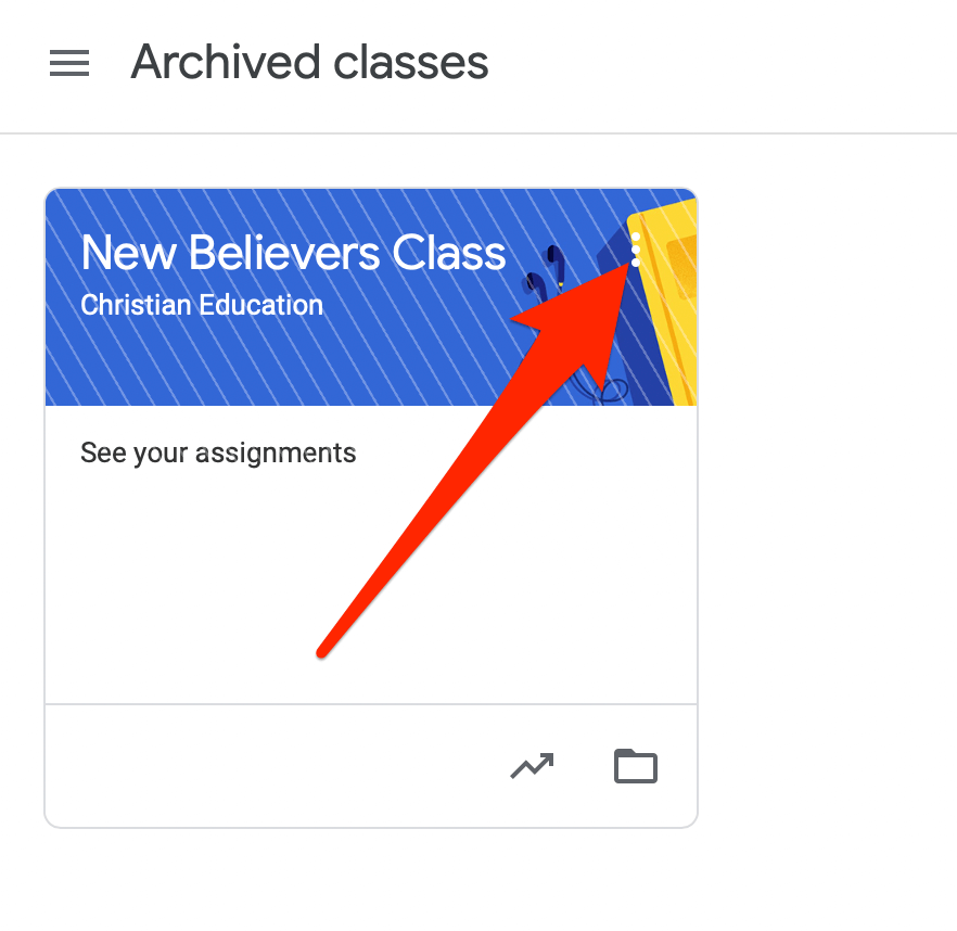 - Open the Google Classroom app and tap More (ellipsis) on the card for the class you want to archive.