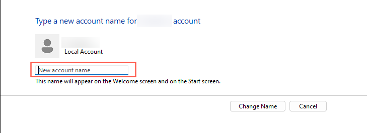 The most convenient way to change a username for a local account is through the Control Panel in Windows 11 and 10 . Just: