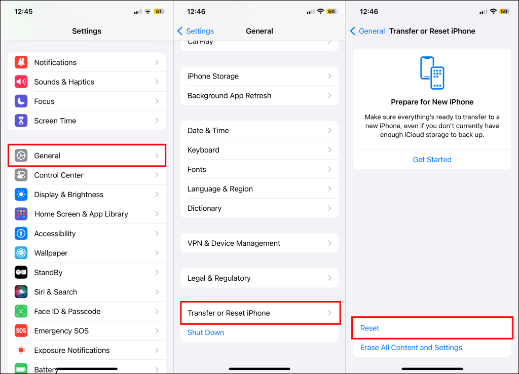 Start by creating an iCloud or a Finder/iTunes backup to insulate against data loss. You can restore your apps and settings after the factory reset.