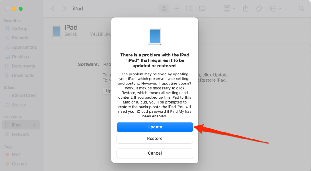 Select Update to prompt your Mac or PC to download the latest copy of the iPhone’s system software from the Apple servers. Then, follow the on-screen instructions to reinstall iOS.