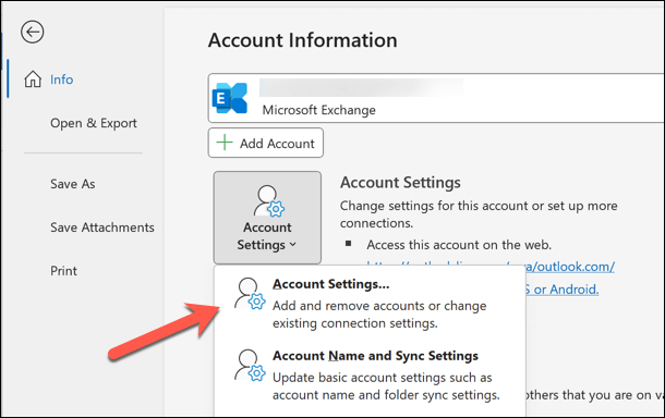 - Open Microsoft Outlook and select File > Account Settings > Account Settings .