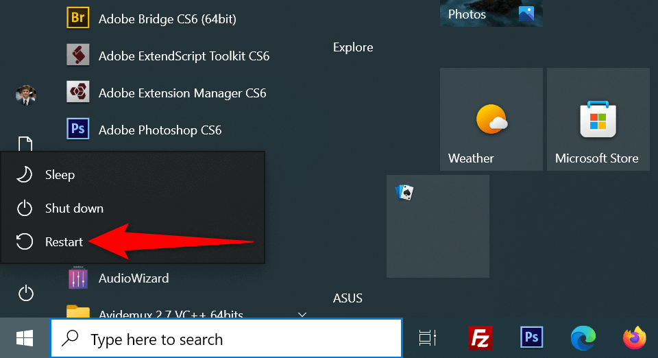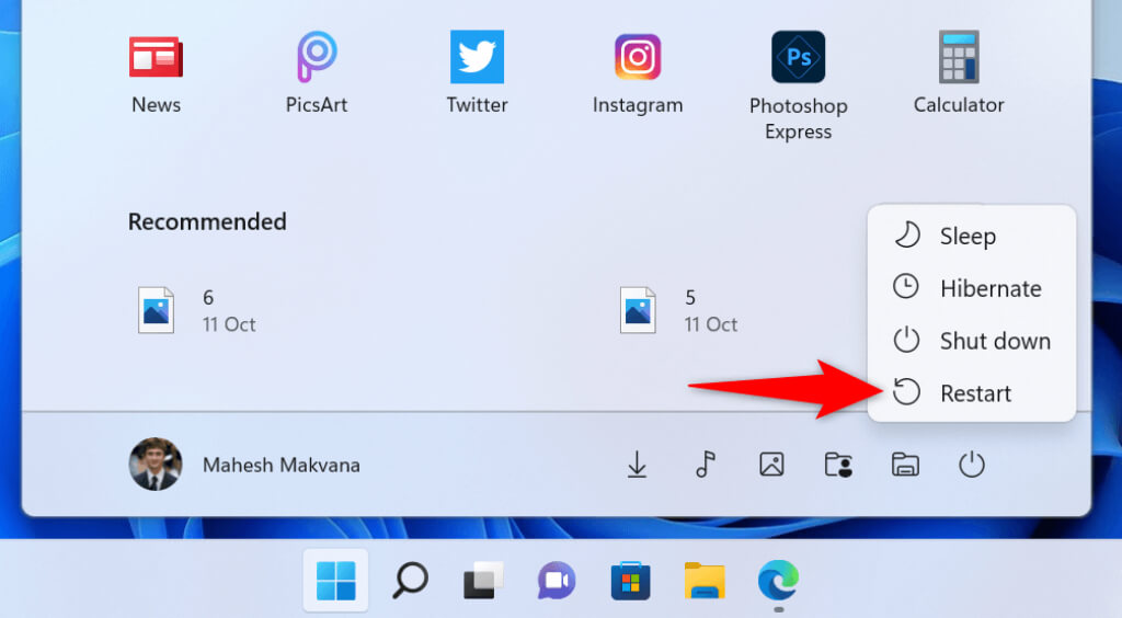 An easy way to fix most issues in Windows is to reboot your PC . Doing so fixes many minor glitches with the system, allowing you to have a bug-free experience with your apps.