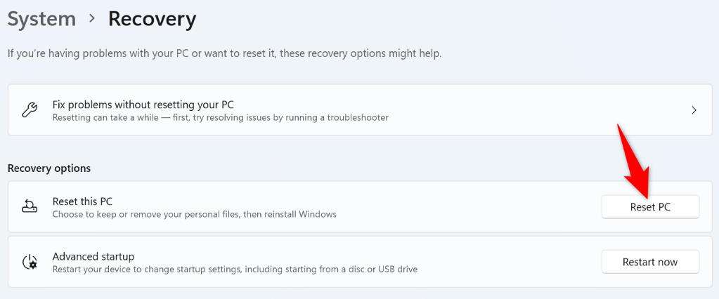 - Select Reset PC next to Reset this PC .