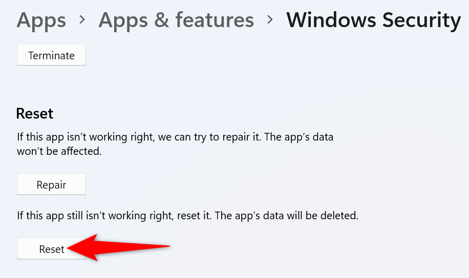 Like all other apps, Windows Security can experience issues sometimes. One way to fix these app-related issues is to reset your faulty app. Doing so deletes your data and configured options in the app, letting you use the app from scratch.