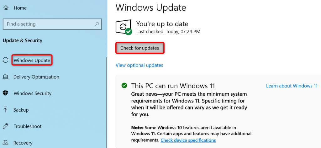 You can fix that by updating your Windows PC to the latest version available. Doing so patches various bugs on your system and possibly adds new features.