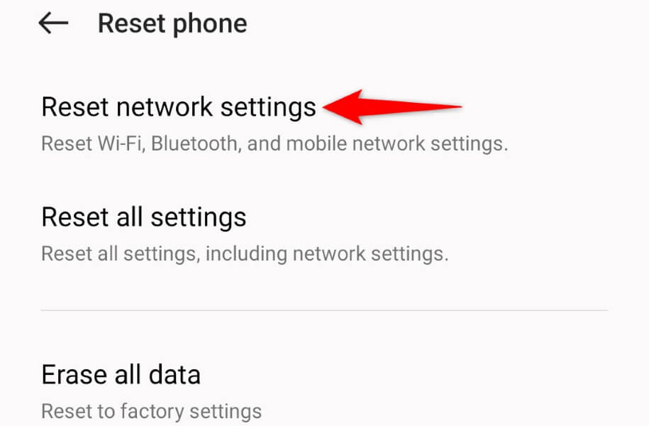 - Choose Reset network settings and follow the on-screen instructions.