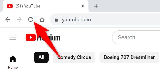 When you can’t access your favorite content, reload your current YouTube web page and see if that fixes your issue. This is because your web page or web browser may be experiencing minor glitches, which you can resolve by refreshing the page .