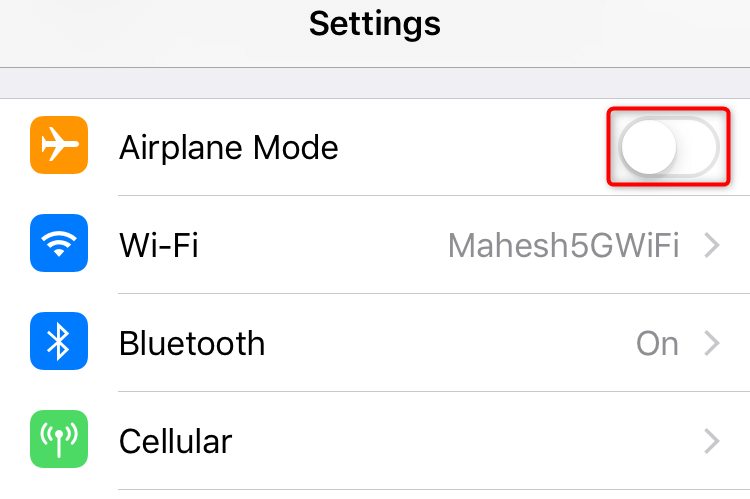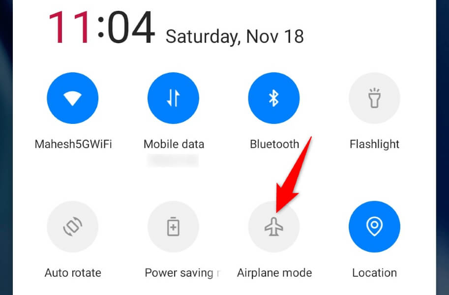 Another fix to apply is to enable and disable your phone’s airplane mode and see if that fixes your issue. Turning on the mode disconnects your phone from all networks, and turning off the mode restores those connections. This helps fix the connection issues that may be causing your problem.