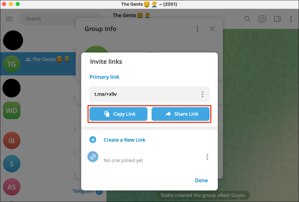 Note: If you revoke your group’s primary invitation link, Telegram automatically replaces it with a new link. Send the new invite link to anyone wanting to join the group.