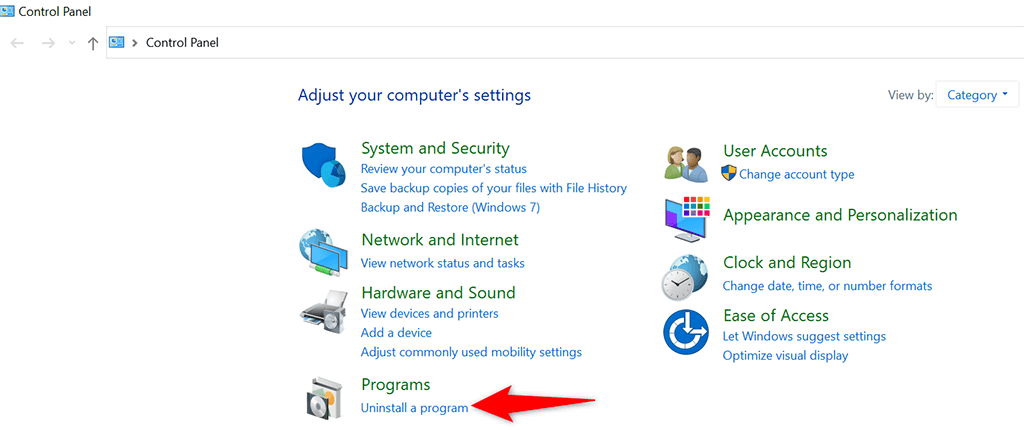 - Select Uninstall a program (underneath Programs ) in the Control Panel window.