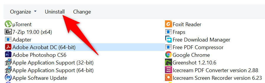 - Select the program you want to remove and choose Uninstall on the top menu—at the top of the programs list.