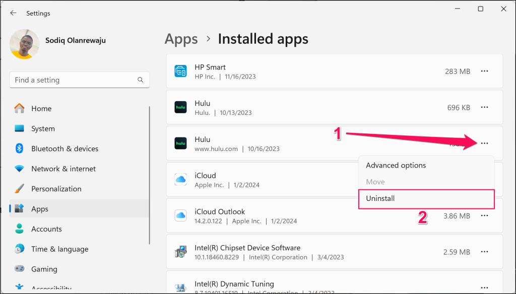 - Locate the app you want to uninstall on the list of installed applications. Select the three-dot menu icon next to the app and choose Uninstall .