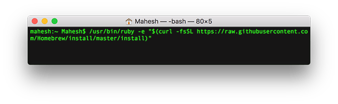 Open the Terminal app and run the following command in it to install Homebrew. /usr/bin/ruby -e “$(curl -fsSL https://raw.githubusercontent.com/Homebrew/install/master/install)”
