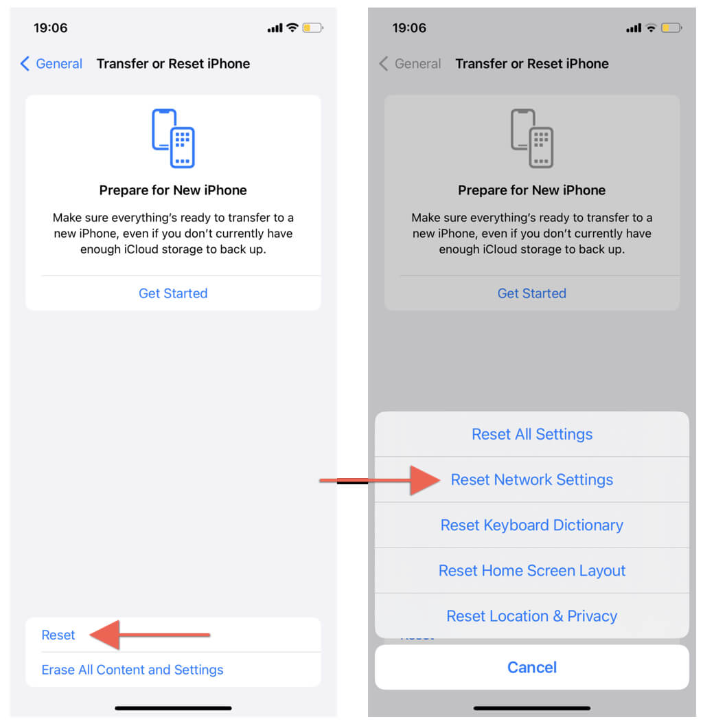 - Scroll down and tap Transfer or Reset iPhone/iPad .