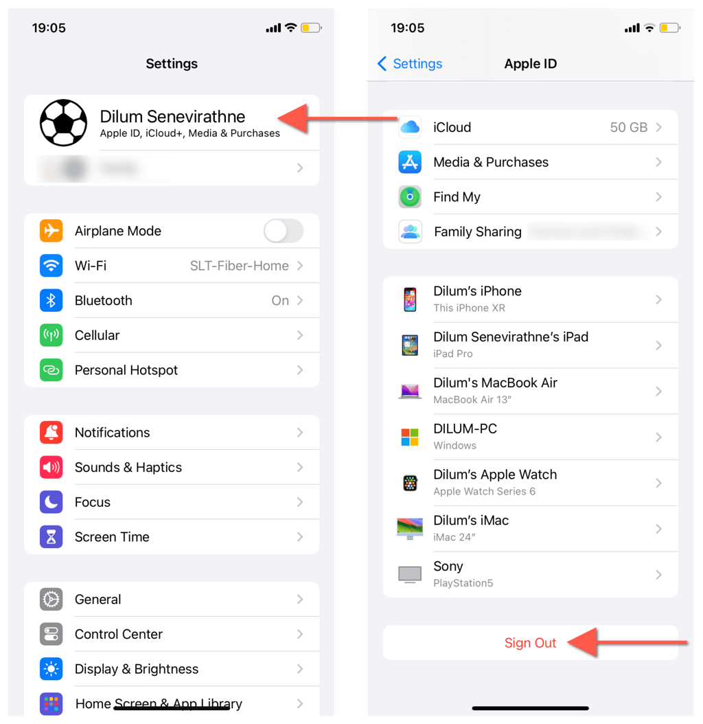 - Tap Sign Out and follow all on-screen instructions to sign out.