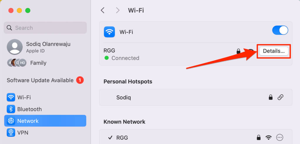 - Go to System Settings > Network > Wi-Fi (or Ethernet ) and select the Details button next to the network you’re currently using.