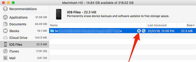 - On the following screen, select iOS Files from the left sidebar so your iOS backups are shown on your screen. Then find the backups you no longer need and click on the X icon next to them. This will delete the selected backups from your Mac.